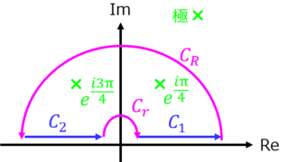 この記事で覚えてほしいこと\(√x=z\)と置き、積分対象の関数を三角関数型\(\cos(x^{2})\)に変換する。\(exp(-iz^{2})\)型の積分を与えられた閉路\( C_{1} , C_{2} , C_{3}\)を用いて行う。積分結果の実部が与えられた結果にあたる。