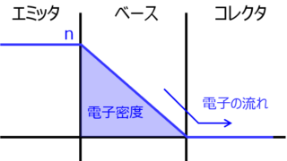 エミッタ接地の電流増幅率コレクタ電流に対するベース電流の比に対し、(1)式を使用します。\begin{aligned}\beta=\dfrac{I_{C}}{I_{B}}=\dfrac{I_{C}}{I_{E}-I_{C}}=\dfrac{\alpha}{1-\alpha}\end{aligned}