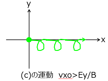 問3 $q>0,v_{xo}>\frac{E_y}{B}>0,v_{yo}=0$のとき