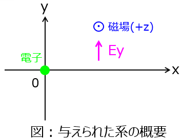 $\boldsymbol{B}(0,0,B_0),\ \boldsymbol{E}(0,E_0,0)$ とすると