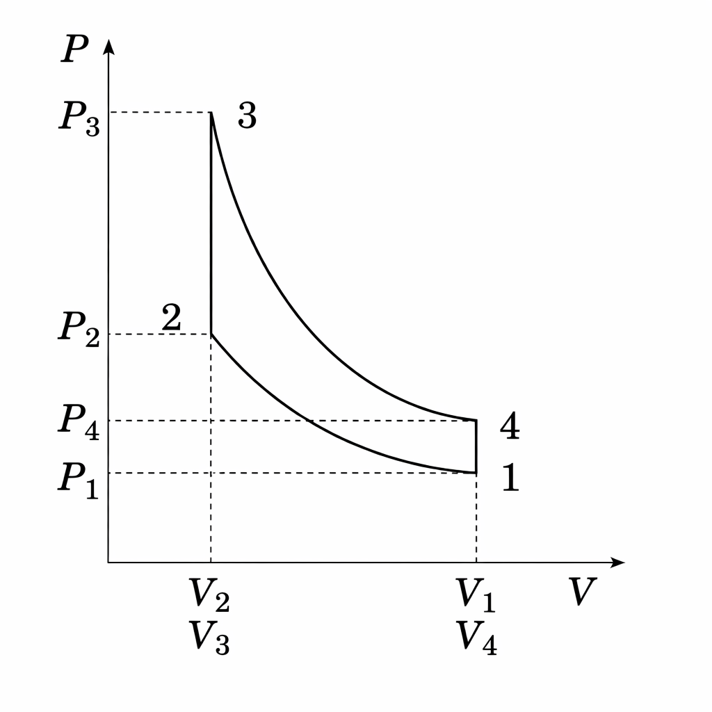\begin{cases}Q_{23}=MC_v (T_3-T_2) \\ Q_{41}=MC_v (T_4-T_1)\end{cases}