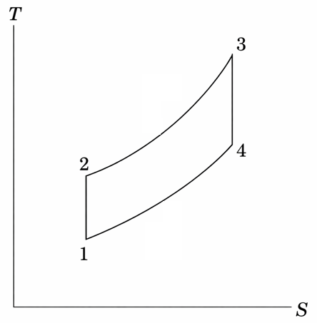 問3:このサイクルのT-S線図(縦軸:T、横軸:S)を示せ。