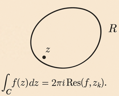 \begin{aligned}\int_{c}f(z)dz=2 \pi i \sum^{n}_{k=1}\mathrm{Res}(f,a_k)\end{aligned}